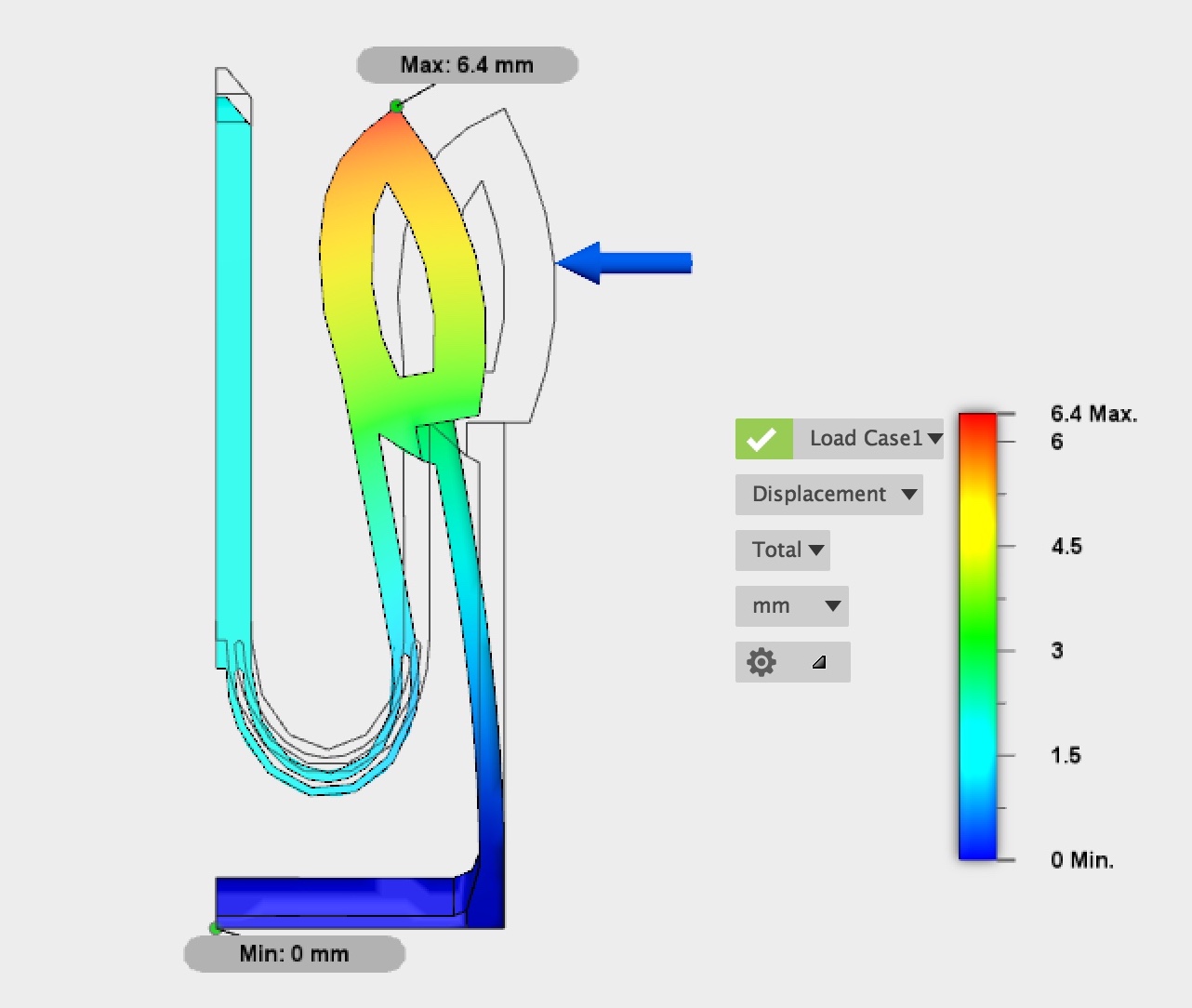 This buckle has undergone over 10 different iterations. The original design was a simple buckle, but after some quick FE analysis I discovered that the plastic was too brittle to withstand repeated deflections. I then borrowed some design ideas including the two ‘u’ connectors which act as springs. After running more FEA tests and refining the buckle by reducing stress concentrations, I reached a design I was happy with. I even included a whistle like the one in the broken buckle.