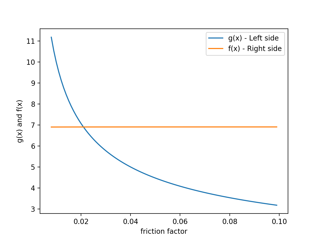 Plot of both sides of Colebrook–White equation