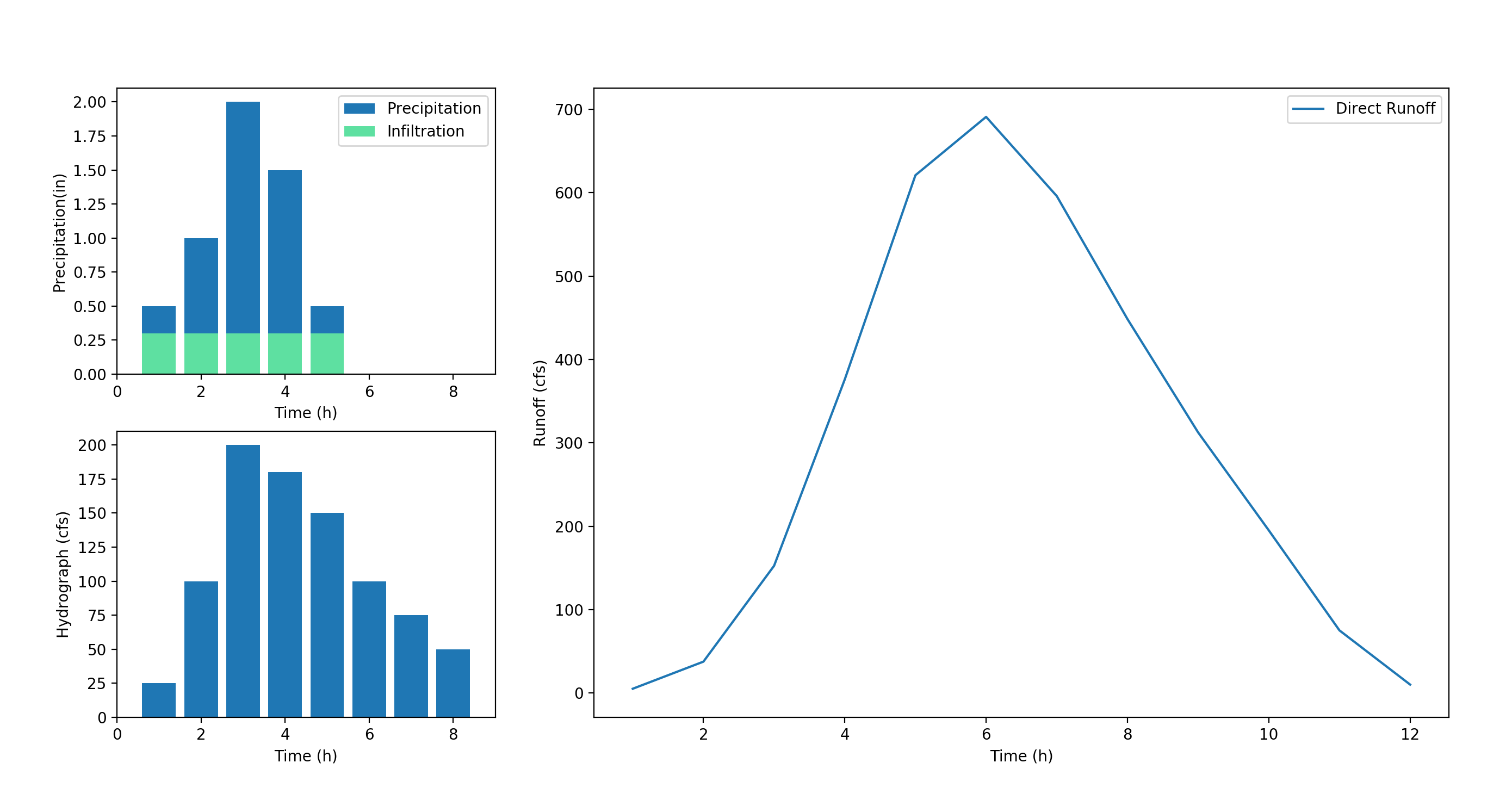 Once you have the hydrograph, it is a simple algorithm to calculate the discharge for each hour. Naturally I wanted to calculate everything in python. The resulting table is below: